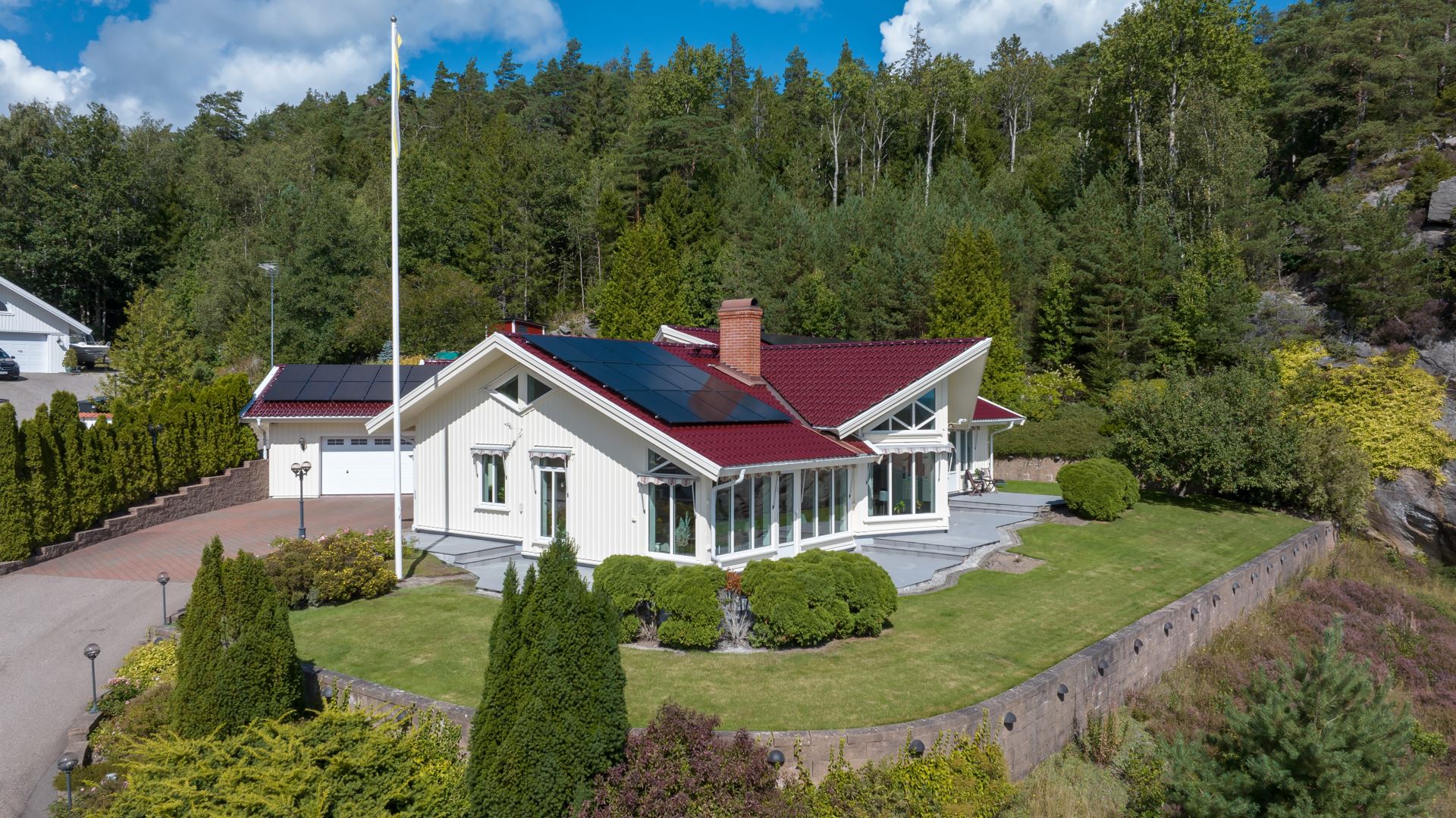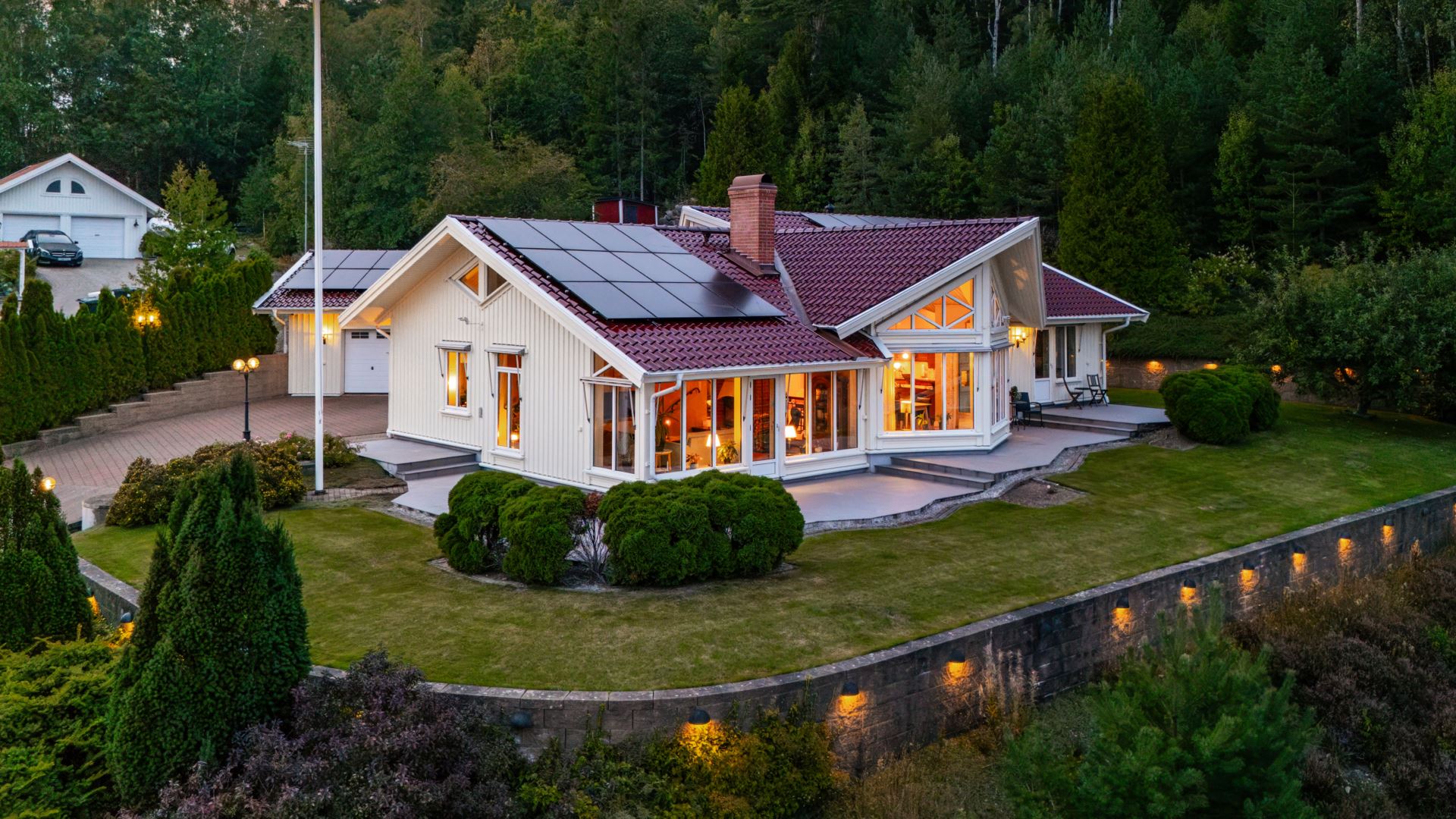 På fastigheten finns det ett dubbelgarage, gäststuga, vedbod samt växthus.