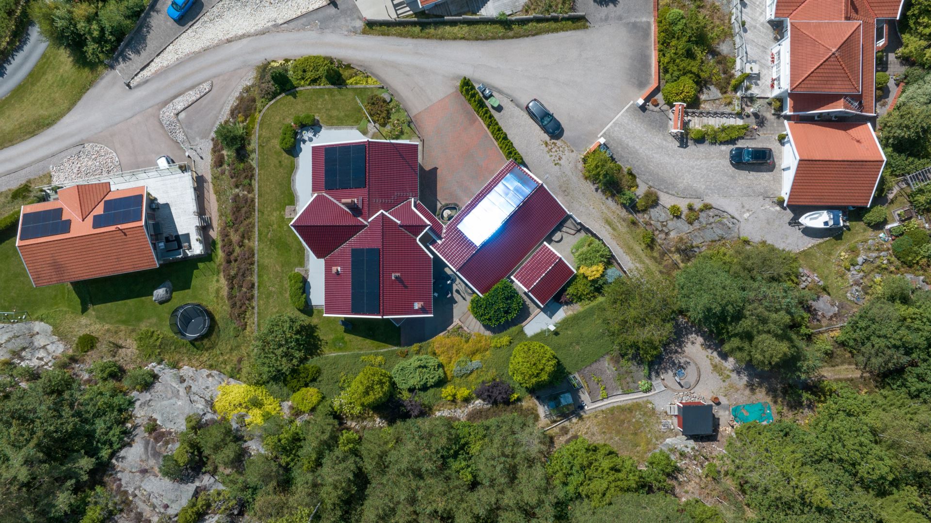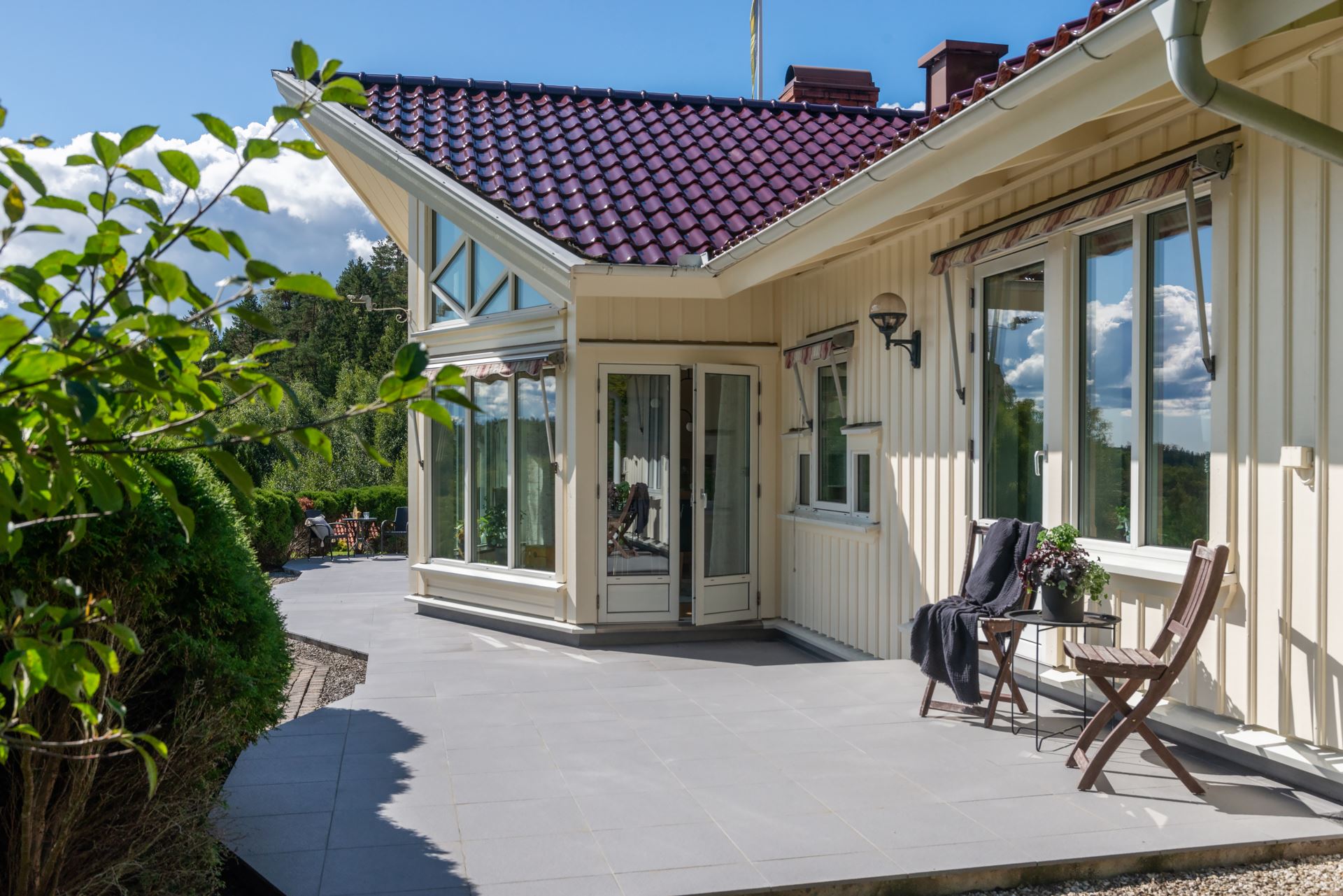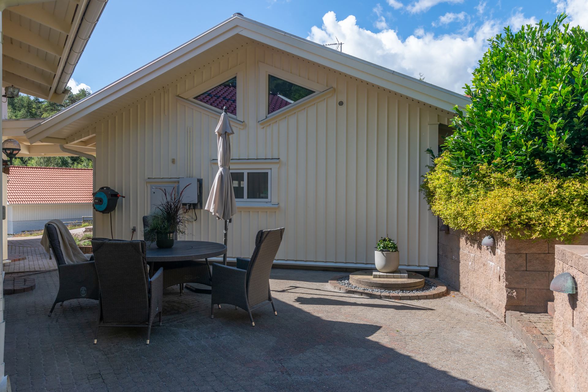 Finns flertalet uteplatser på fastigheten.