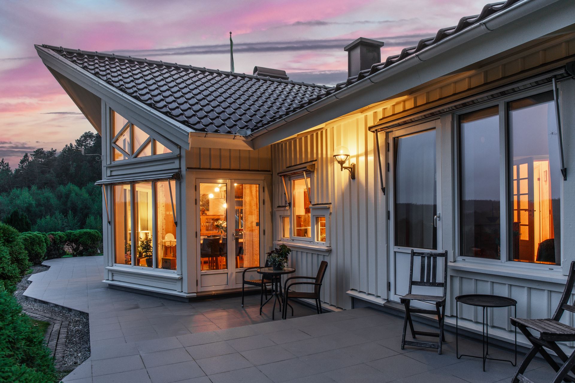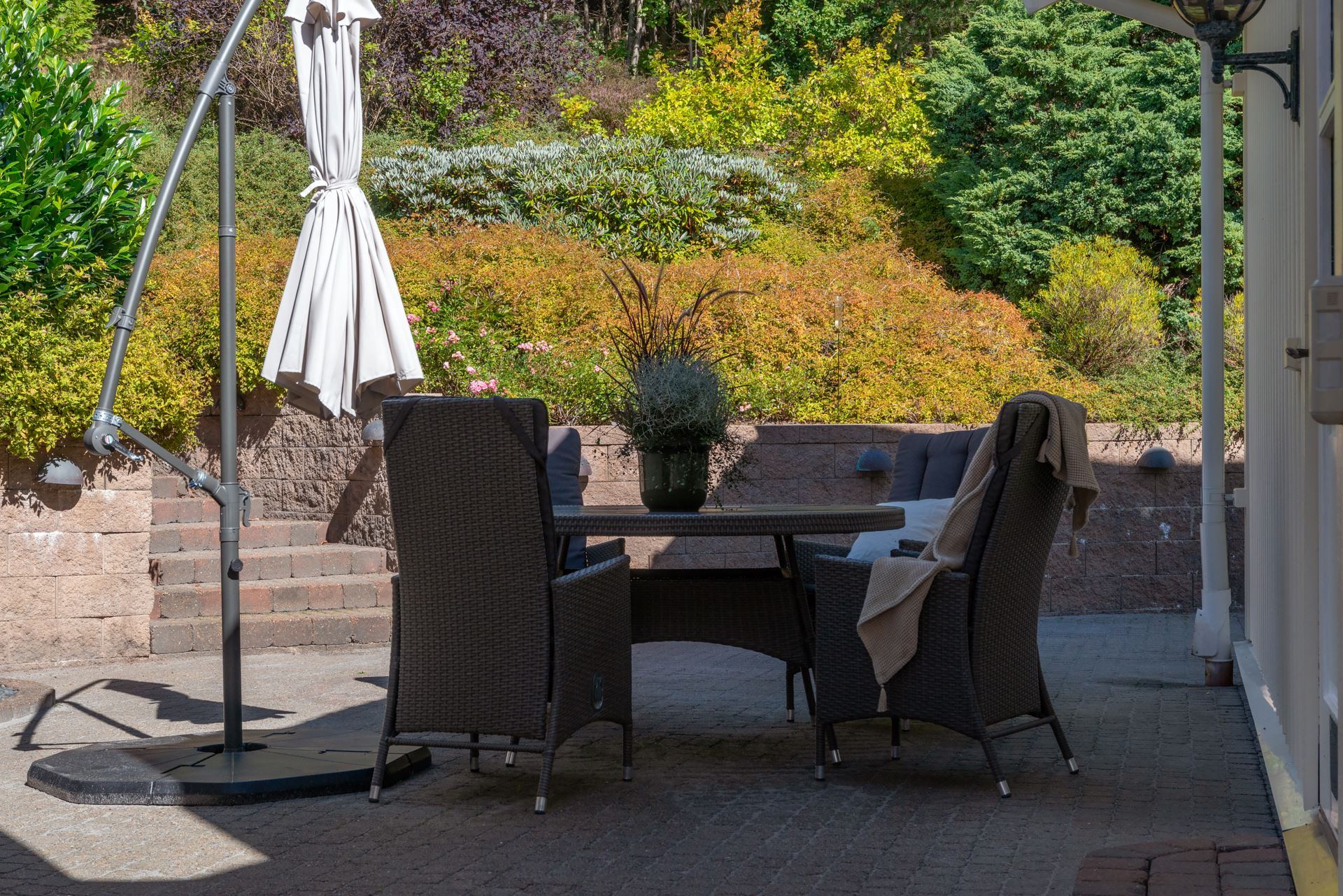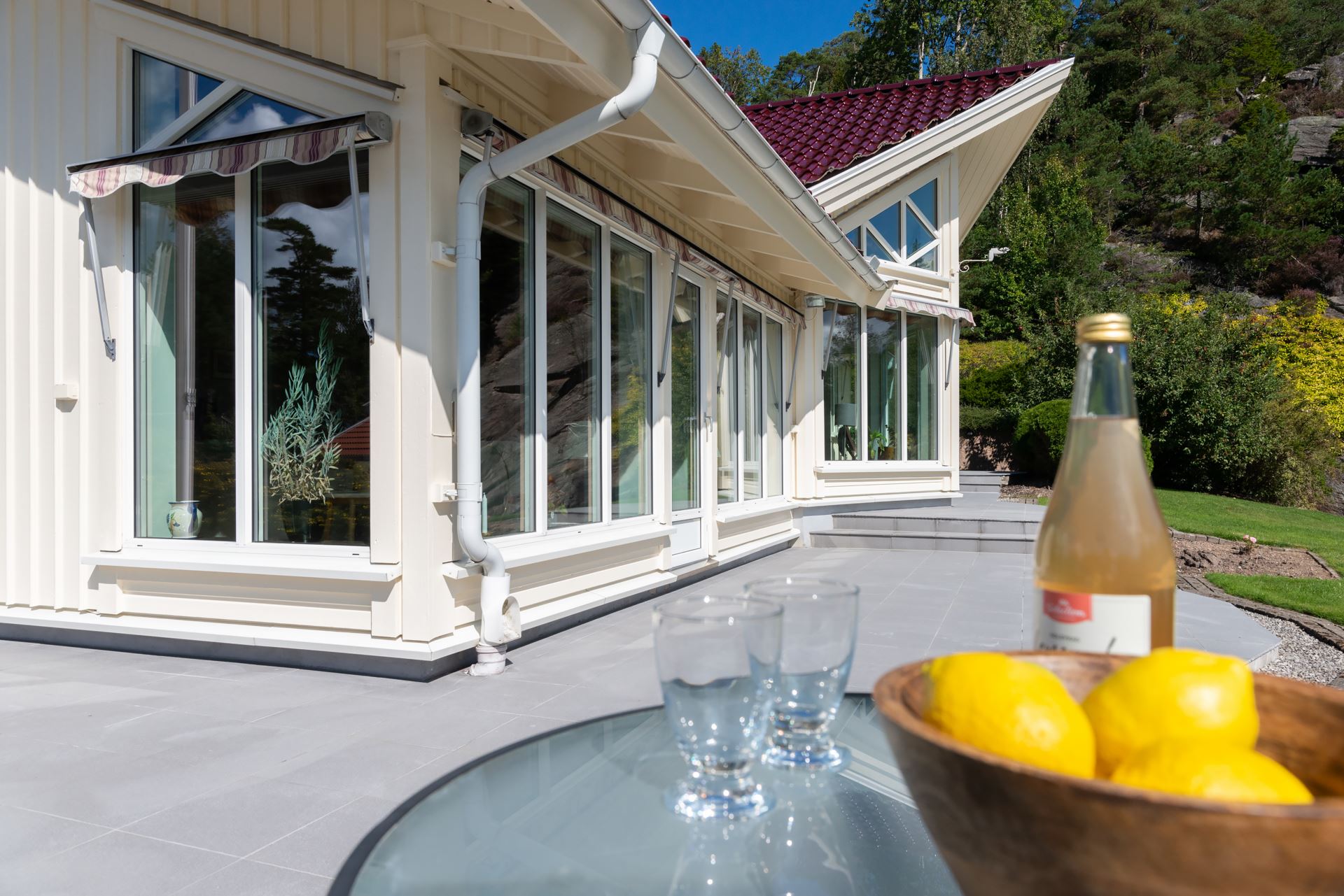Finns flertalet uteplatser på fastigheten.