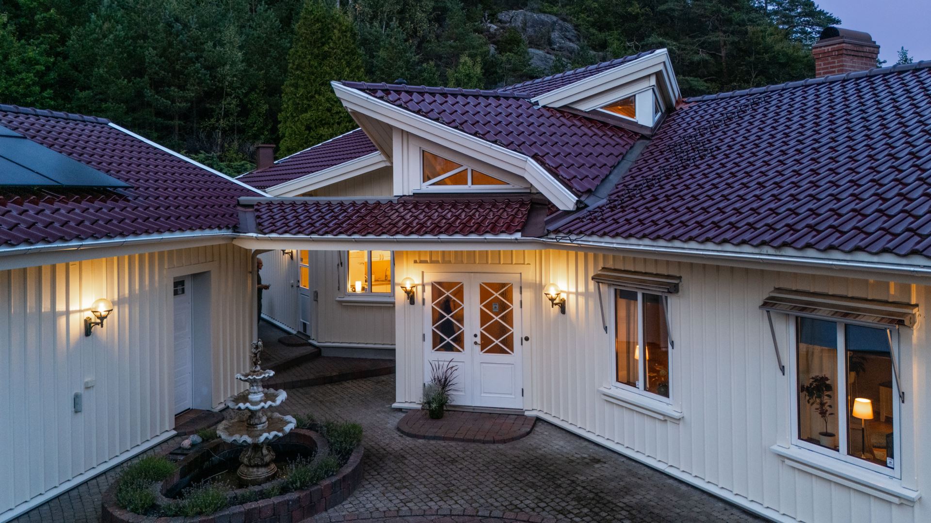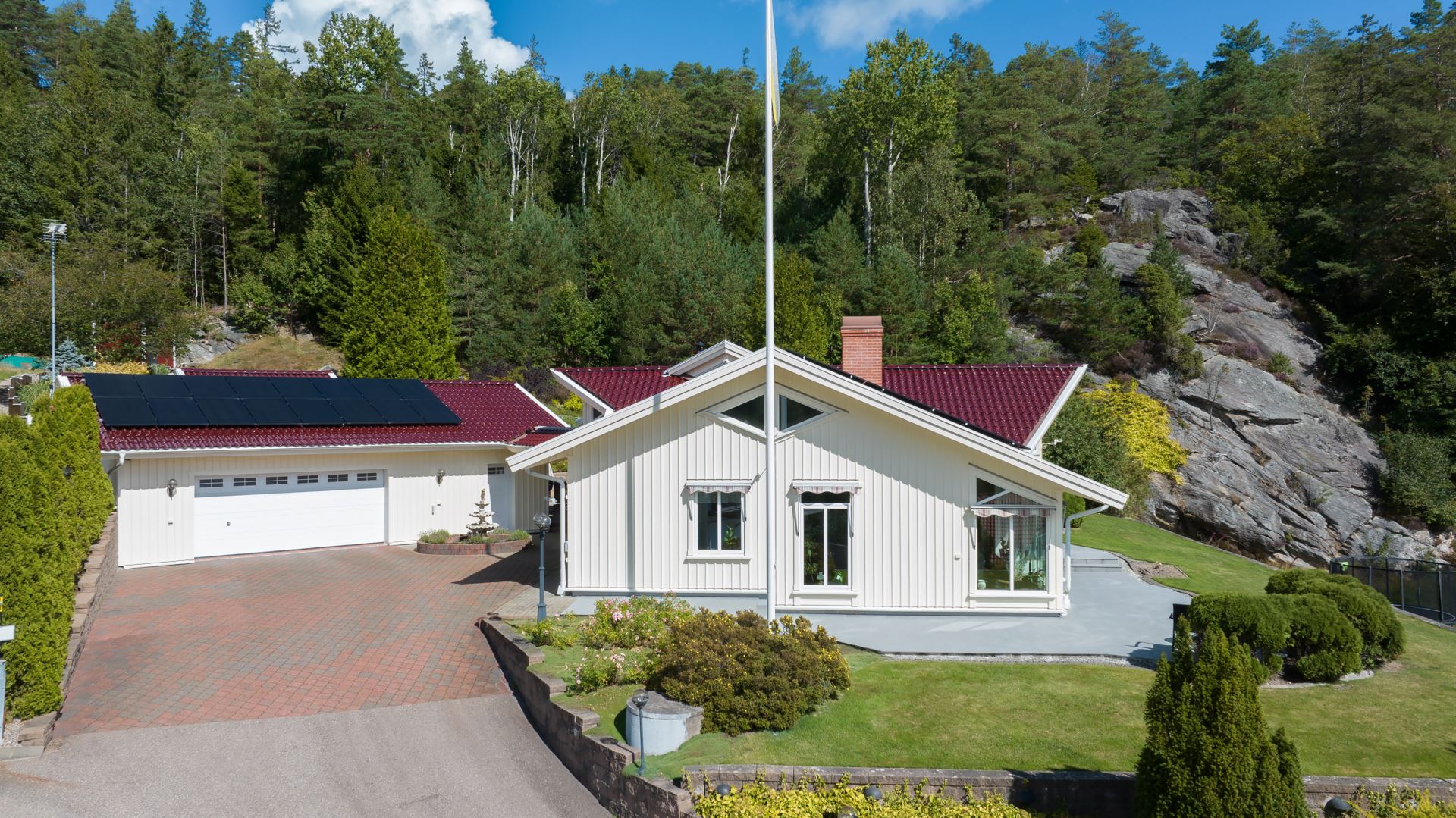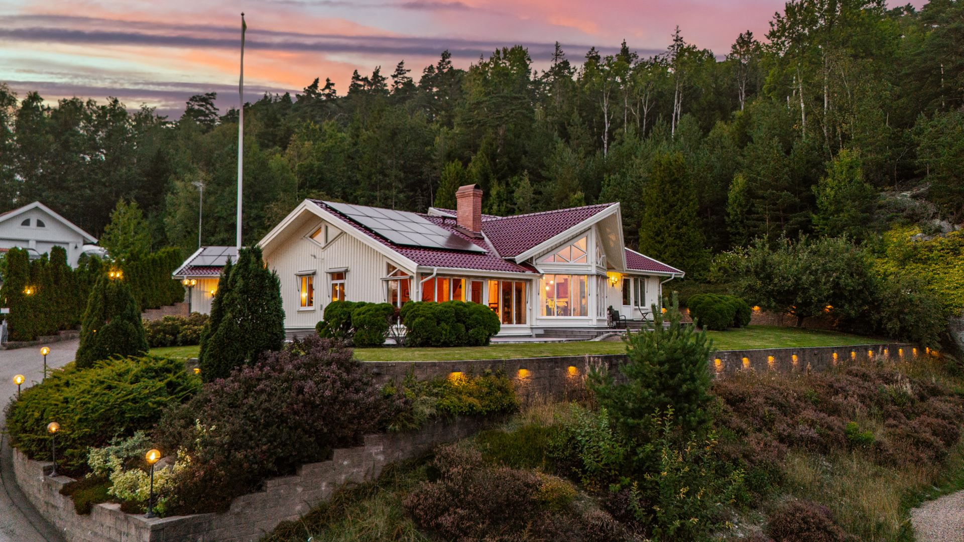 Välkommen till Skredsviks Backa 119 – en rymlig och välplanerad villa med naturnära läge och smidig närhet till Uddevalla och Torp köpcentrum. Bostaden erbjuder generösa ytor med två sovrum, två badrum, bastu, gott om förvaring och sällskapsytor för både vardag och fest. Huset präglas av ett vackert ljusflöde, öppna ytor och genomtänkta materialval med parkettgolv, stora fönsterpartier och en centralt placerad braskamin som skapar både värme och karaktär. Vardagsrum, matsal och kök hänger samman i en öppen och social planlösning med direkt access till uteplatsen. I anslutning till hallen finns ett arbetsrum som även kan fungera som gästrum. Den praktiska tvättstugan med groventré, torkutrustning och gott om arbetsyta förenklar vardagen, medan bastun och det större badrummet skapar en känsla av vardagslyx. Bostaden har både bergvärme samt solceller från 2023 vilket ger låg energiförbrukning och en hållbar drift. Tomten omgärdas av natur med flera uteplatser, stenläggning och gott om utrymme för både barnlek och trädgårdsprojekt. På uppfarten finns dubbelgarage om ca 69 kvadratmeter och plats för fler fordon samt ett kylrum. Det här är ett hem där funktion, trivsel och läge samspelar på ett sätt som gör det lätt att trivas.