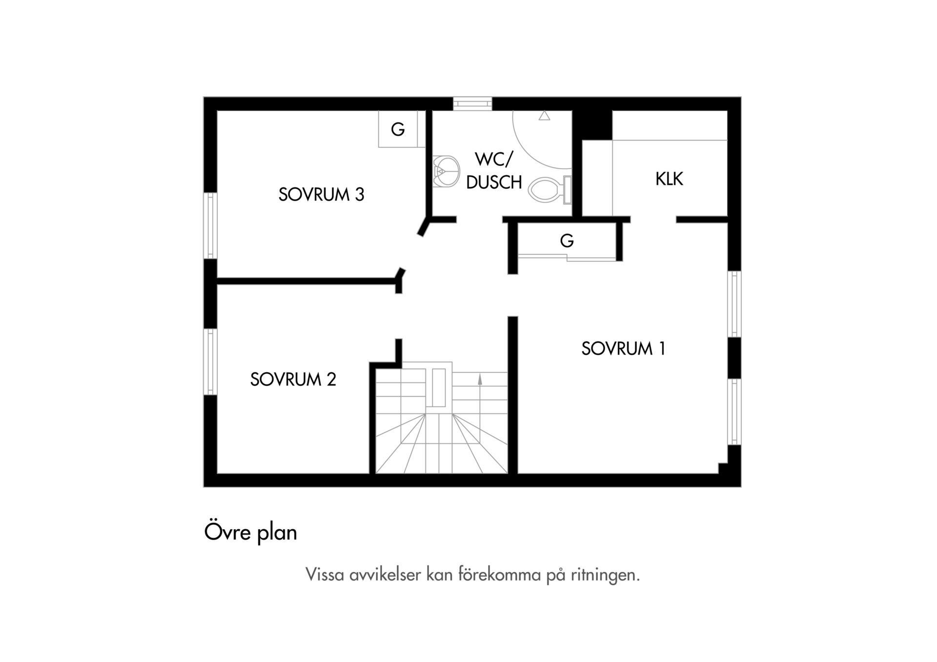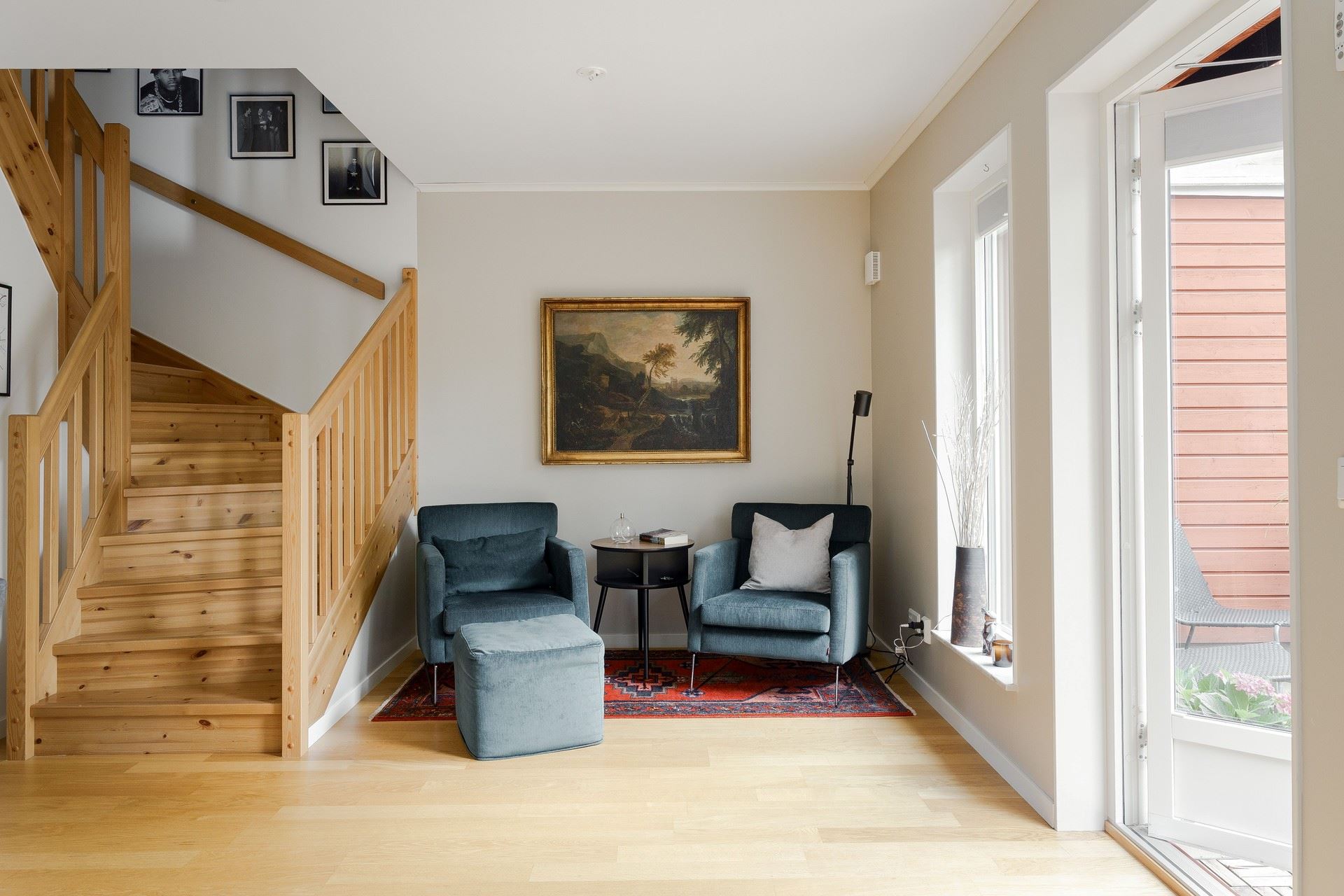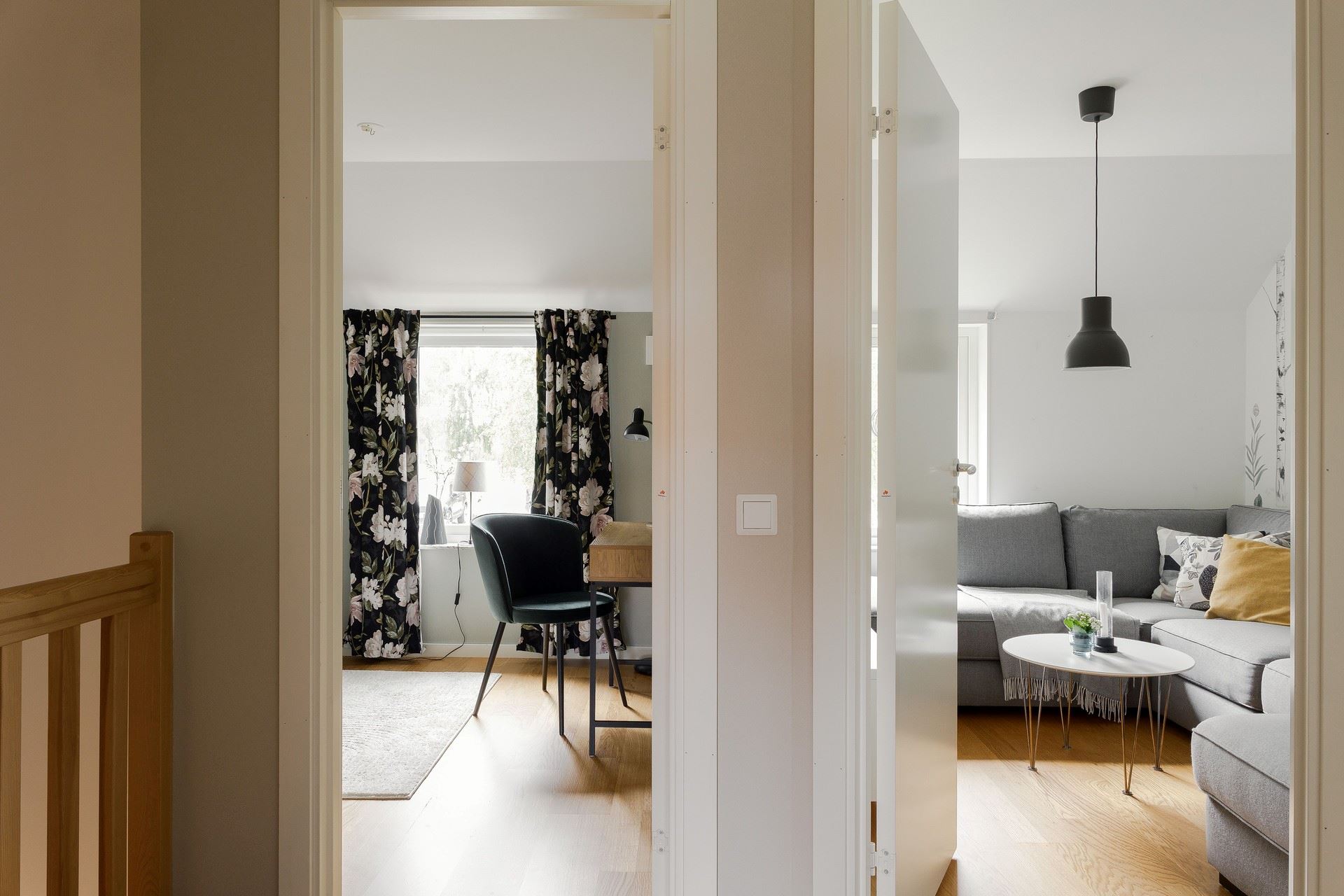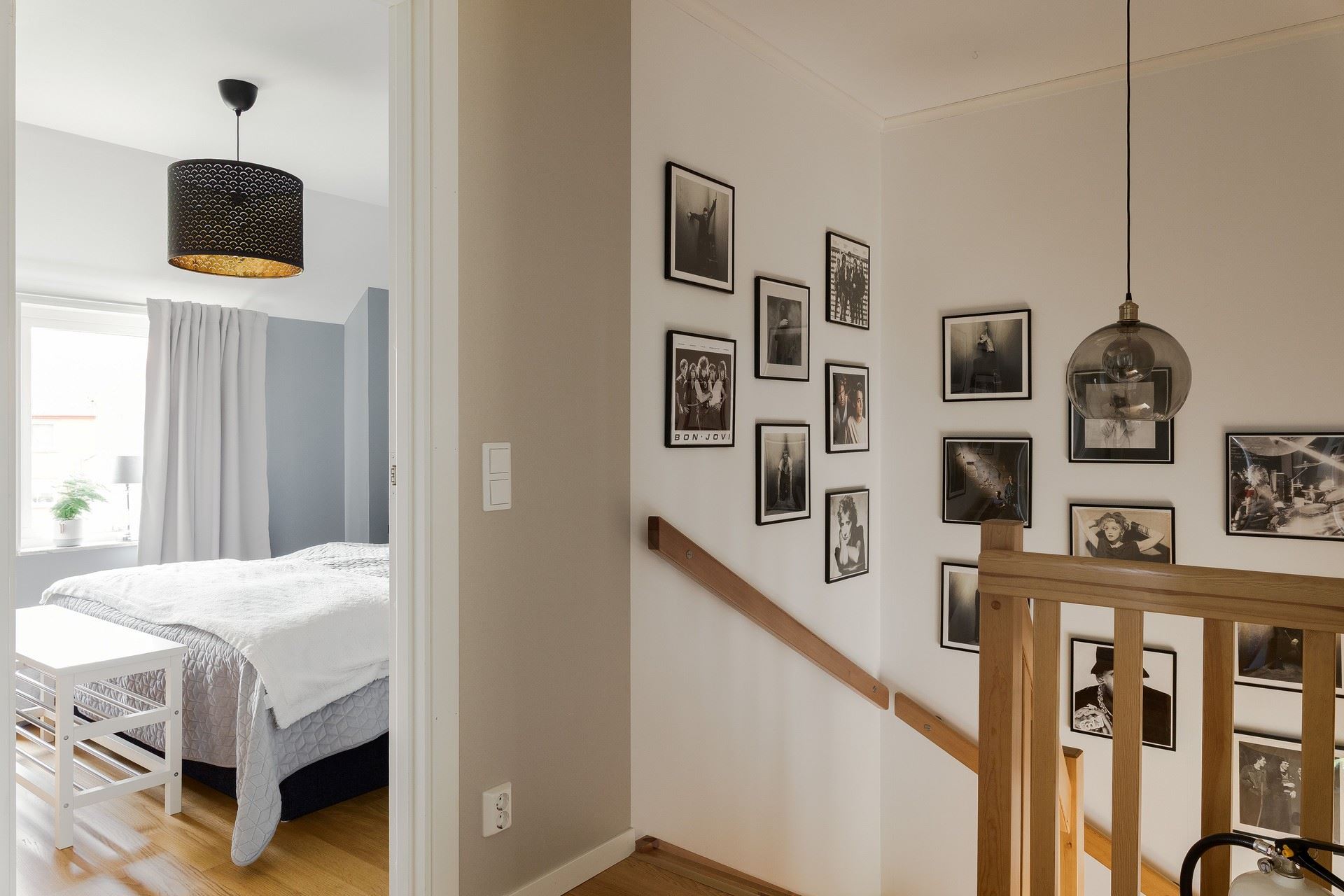 Den privata sfären är på ovanvåningen där det finns tre stycken stora sovrum samt bostadens andra badrum.