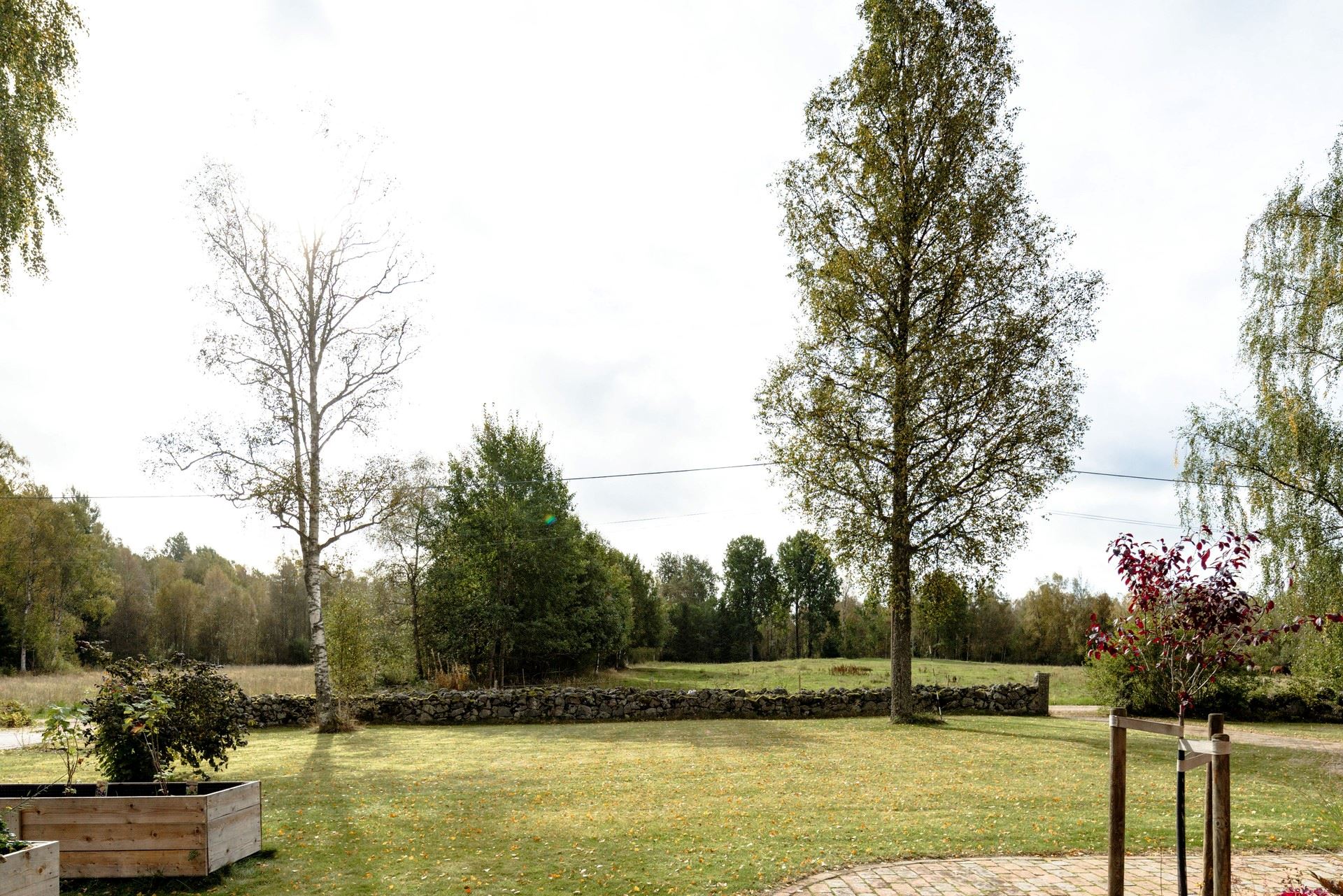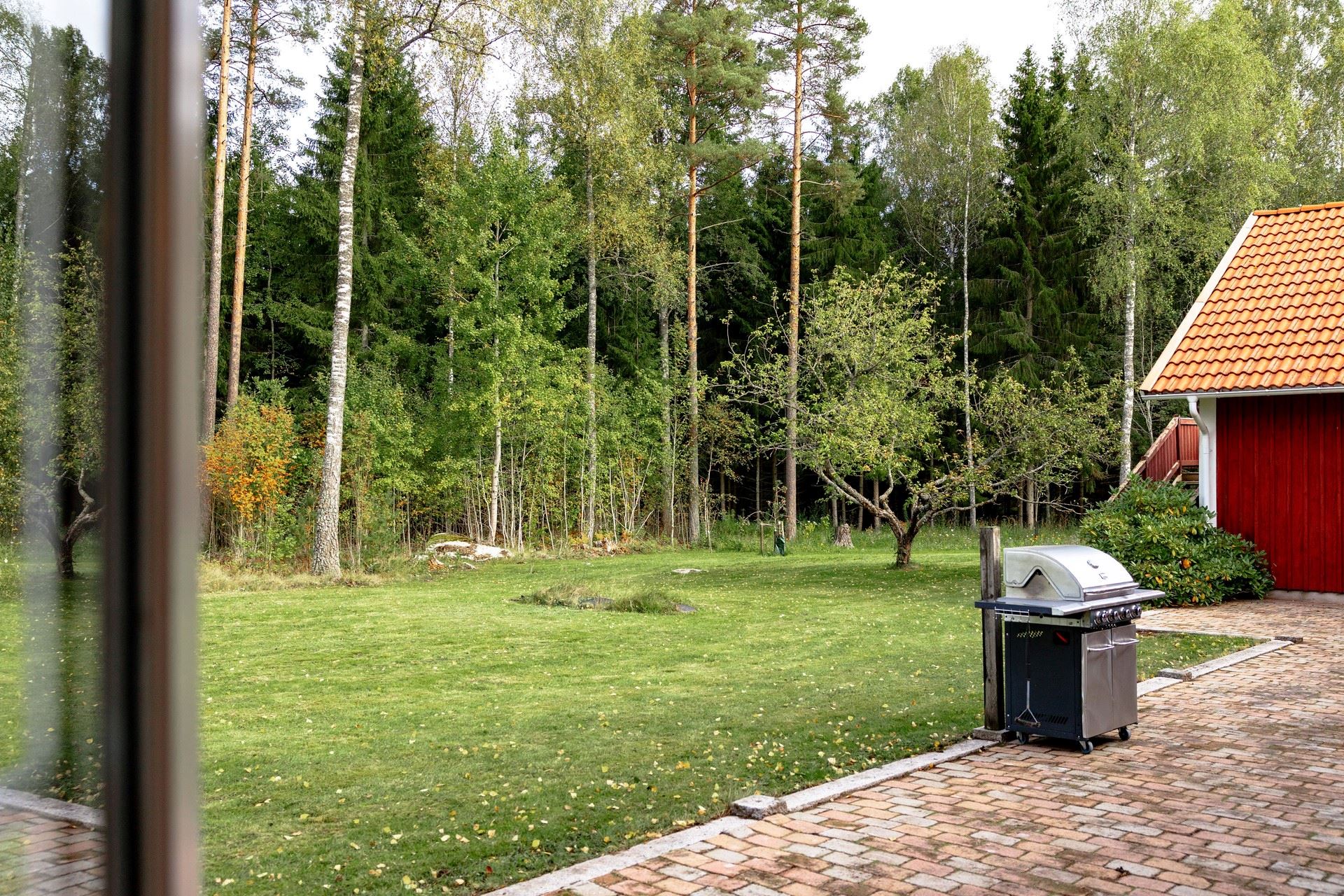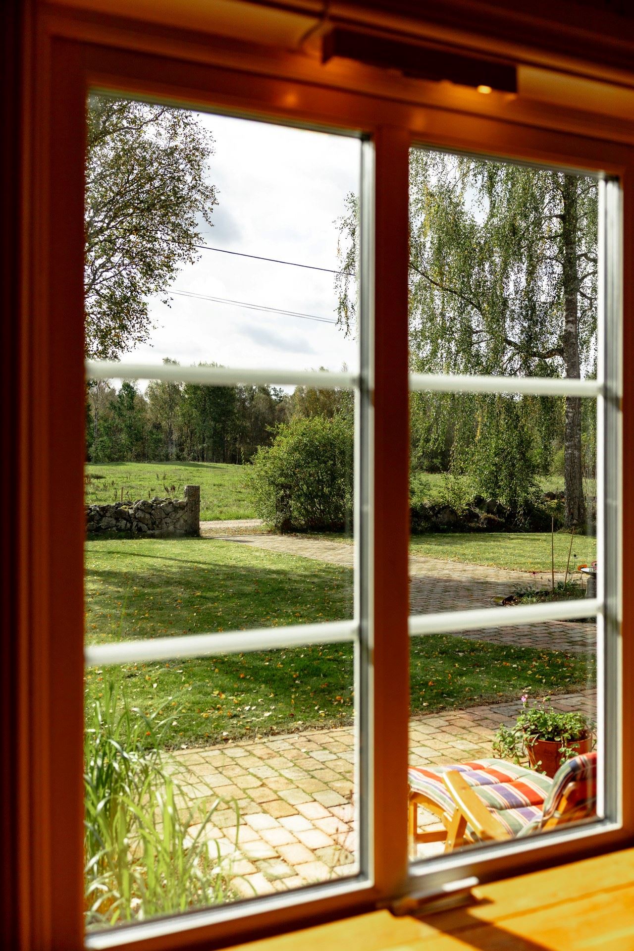 Huset erbjuder tre praktiska utgångar som smidigt binder samman inomhusmiljön med den vackra trädgården. Oavsett om du vill kliva ut med morgonkaffet i solen, ta genvägen till odlingslandet eller låta barnen springa ut till lekytorna, finns här flera möjligheter att njuta av livet både inne och ute.
