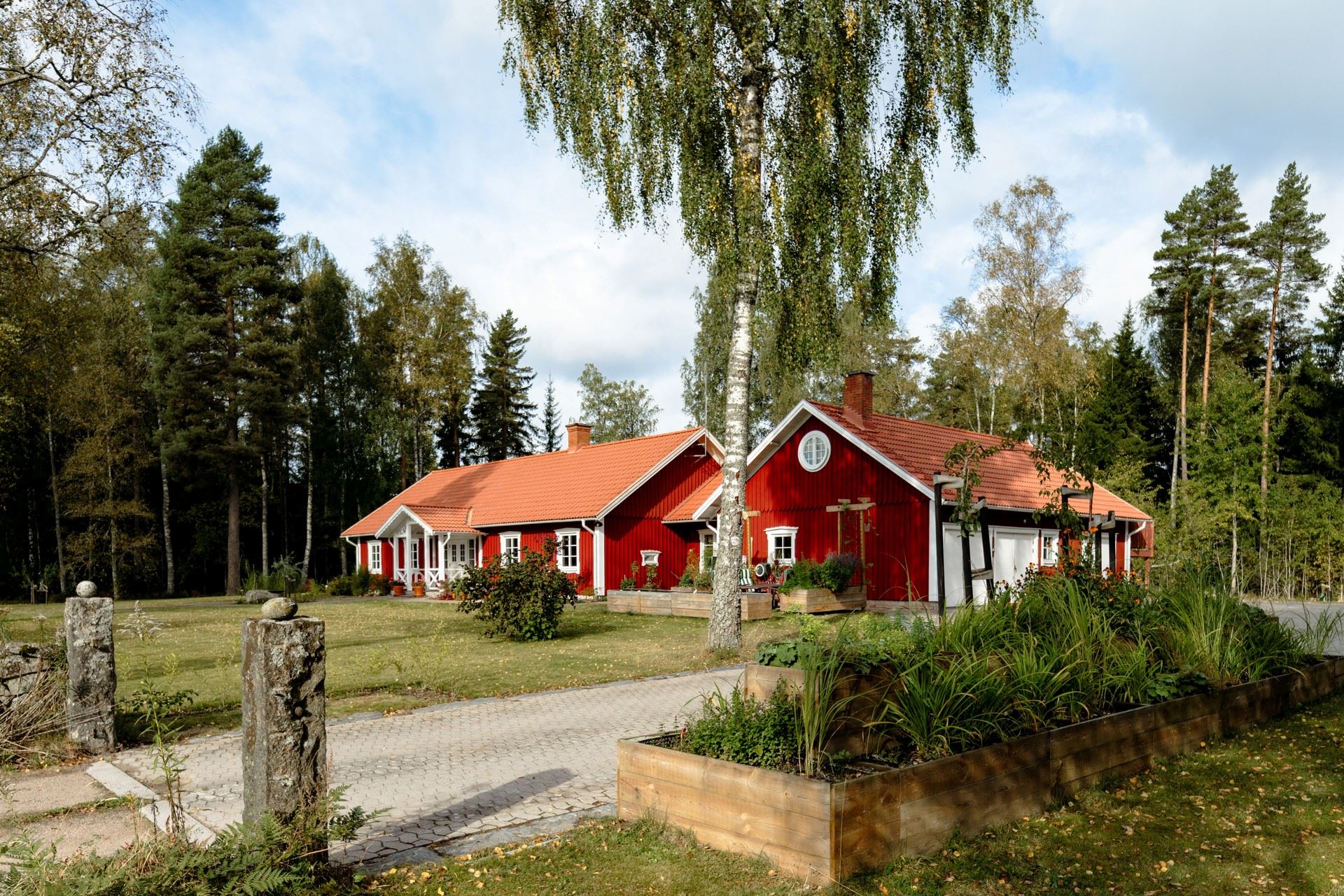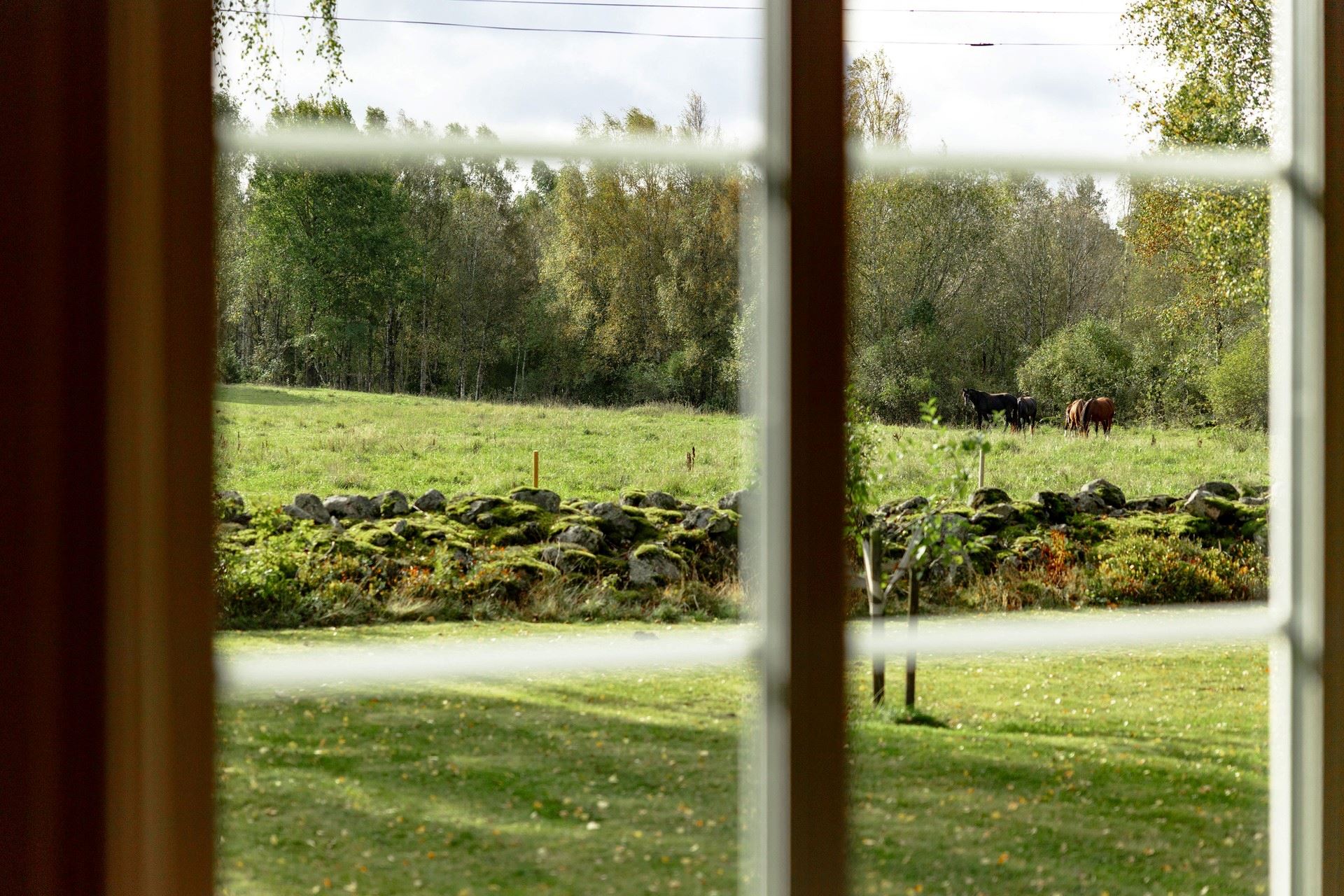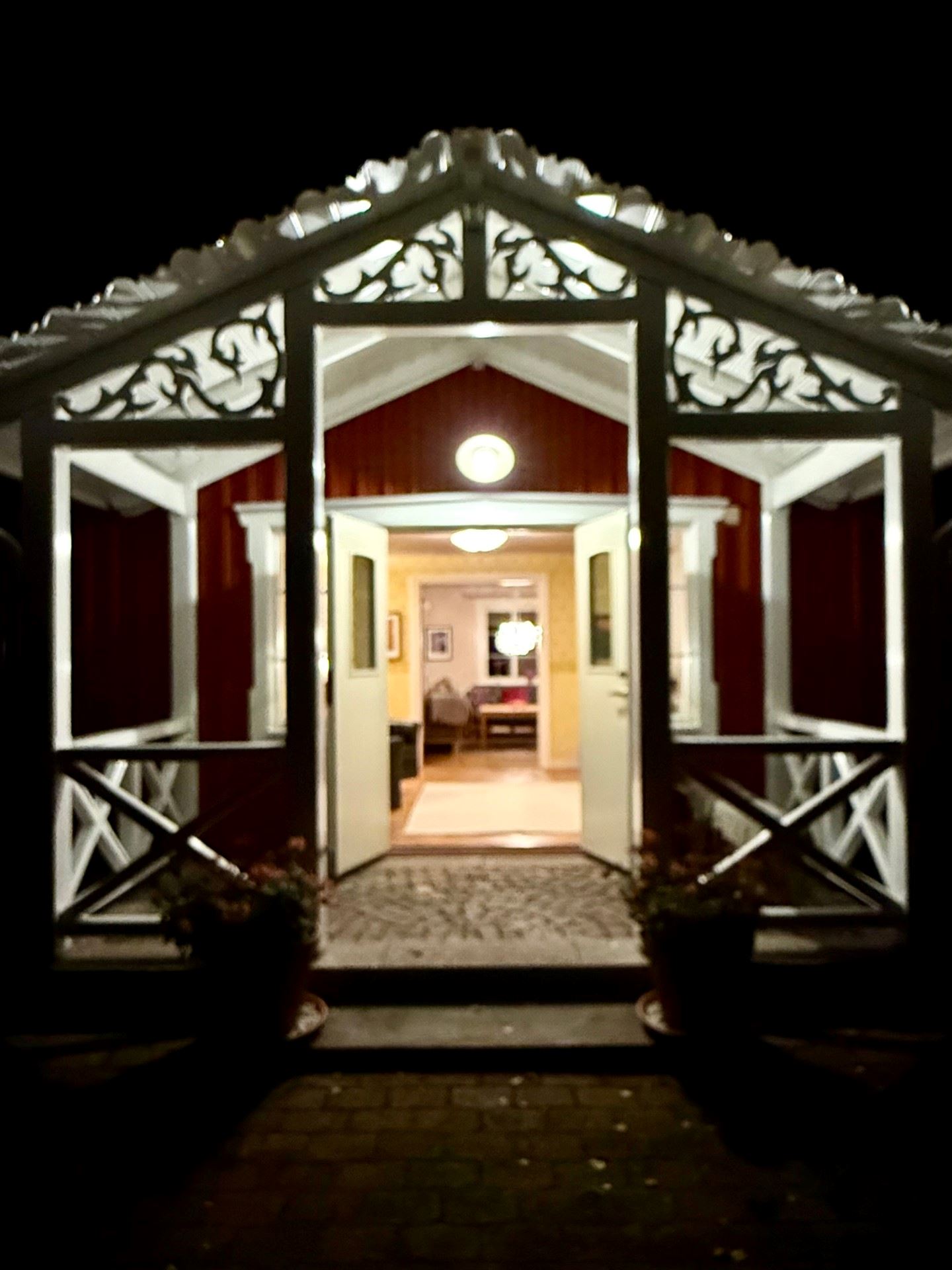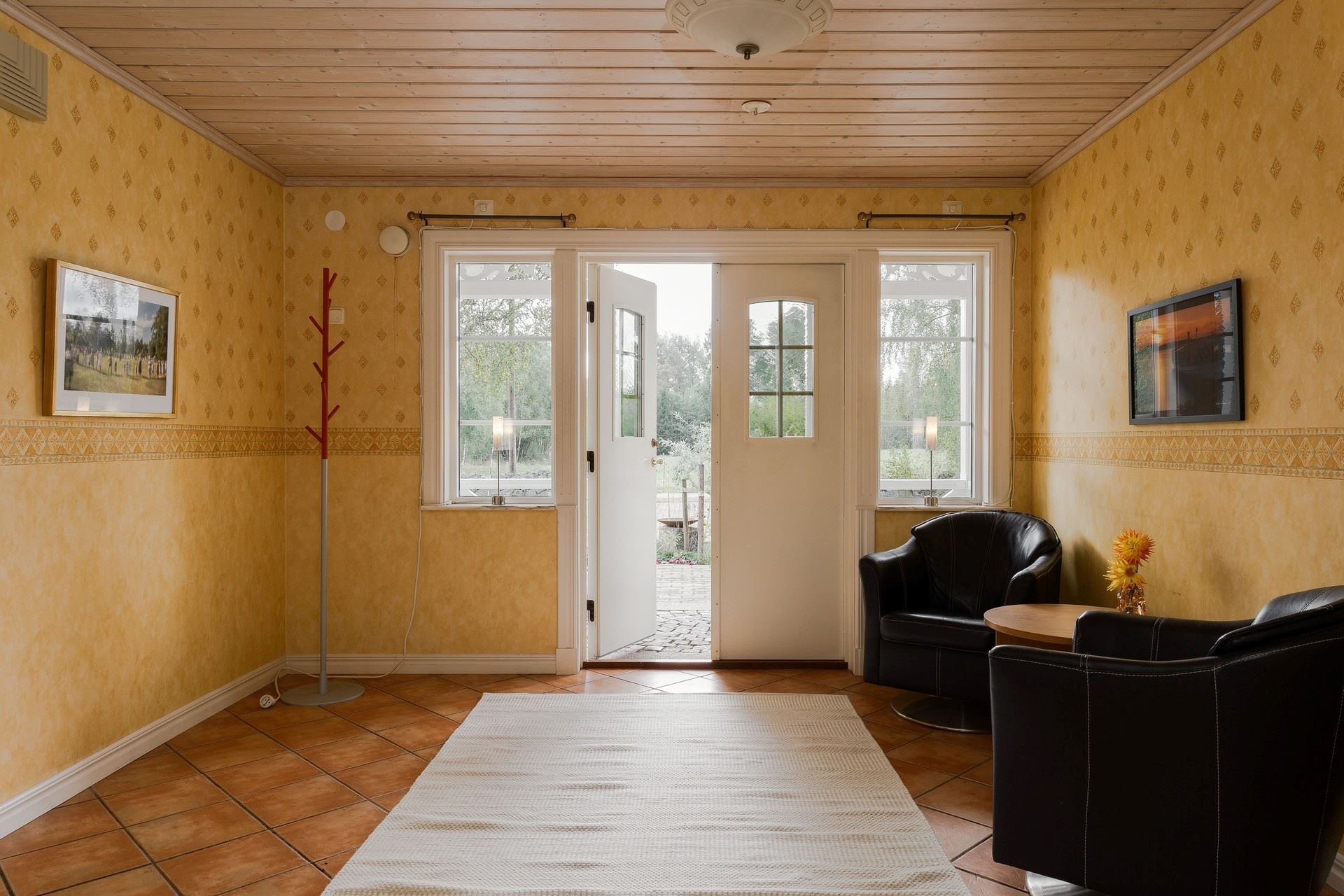 Huset erbjuder tre praktiska utgångar som smidigt binder samman inomhusmiljön med den vackra trädgården. Oavsett om du vill kliva ut med morgonkaffet i solen, ta genvägen till odlingslandet eller låta barnen springa ut till lekytorna, finns här flera möjligheter att njuta av livet både inne och ute.