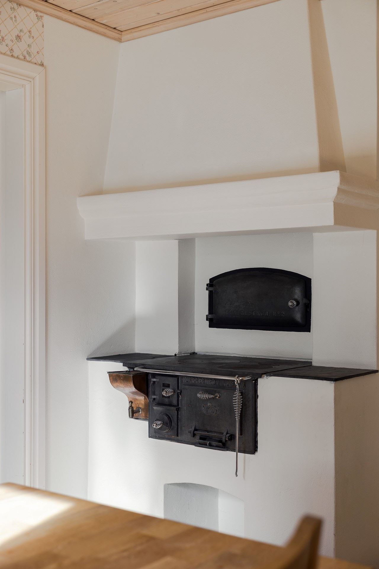 Luft/vattenvärmepump + öppen spis, gjutjärnskamin i hall samt kokspis i kök