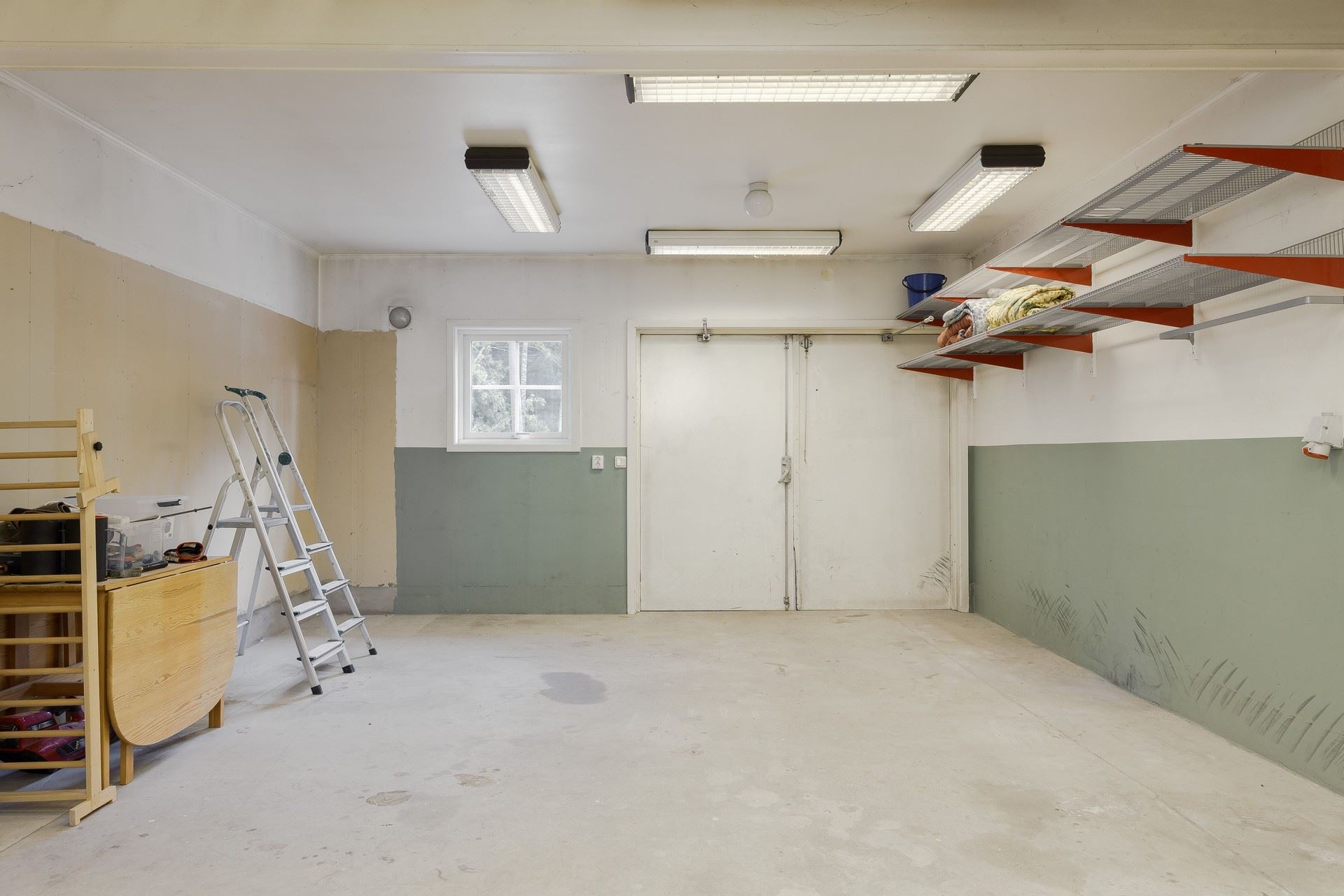 Extra plus till huset är det rymliga trippelgaraget på ca 87 kvm som kombinerar funktion, komfort och flexibilitet i ett och samma utrymme. Garaget är byggt med generösa mått och hög takhöjd, vilket ger plats för flera bilar, hobbyprojekt, förvaring – eller varför inte en egen verkstad? Med tre separata portar får varje utrymme egna användningsområden, vilket gör vardagen smidigare och skapar en känsla av ordning och kontroll. Perfekt för dig som har flera bilar eller ett hobbyintresse. Detta utrymme är förberett för vilket intresse du än har med vattenutkastare, 3 fas uttag och skön golvvärme genomgående i hela delen. Det gamla pannrummet är den mindre delen, även den med garageport. Här finns värmepumpen. Murverket går att använda till att göra om till en ytterligare öppen spis, ytan kan enkelt anpassas efter just dina behov.