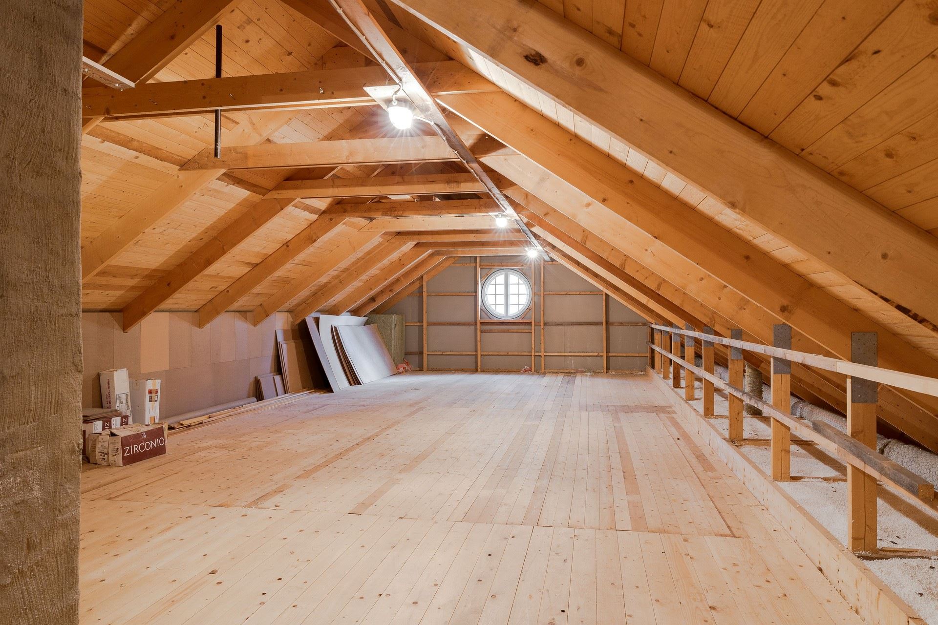Magiskt utrymme där fantasin sätter gränser. Här möjliggörs ytterligare boyta på minst 100 kvm om man önskar bygga vidare. Ingång till detta utrymme går via takstege eller via loftgångstrappen utifrån på baksidan.