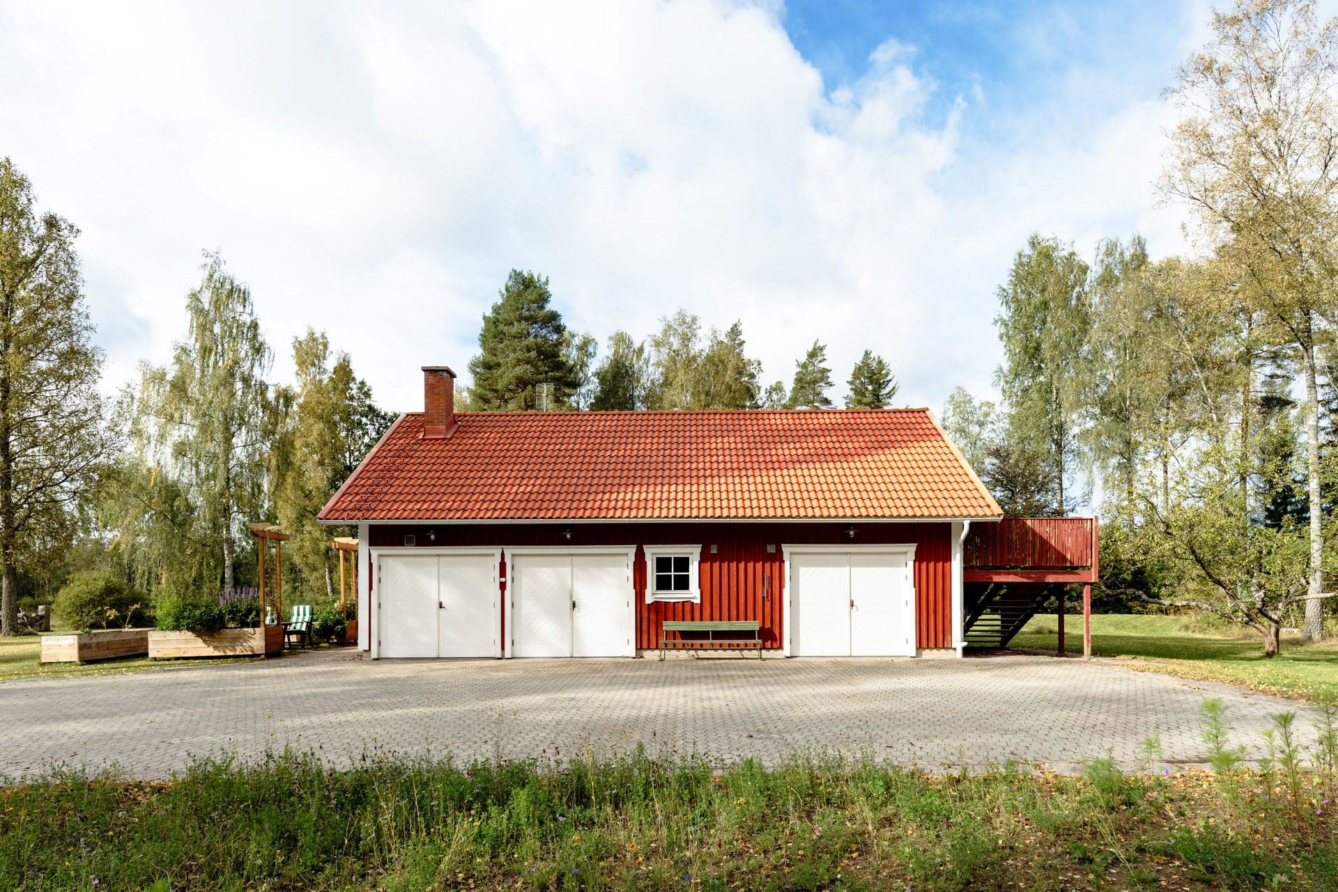 Här finns mycket goda parkeringsmöjligheter för både familjens och gästers fordon. En rymlig biluppfart välkomnar dig hem och erbjuder plats för flera bilar, och det stora garaget med tre separata portar rymmer ytterligare fordon, verkstad eller förvaring. Perfekt för dig med bilintresse, behov av extra utrymme eller som helt enkelt vill ha det bekvämt och ordnat i vardagen.